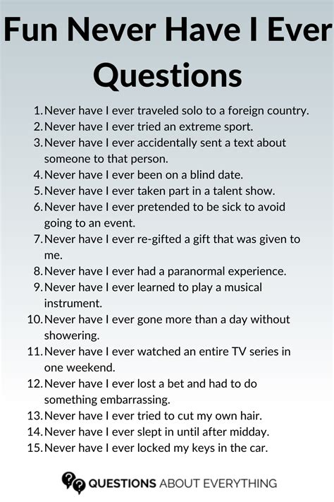 Never Have I Ever Question. Never have i ever lost my voice. Never have i ever broken a bone.